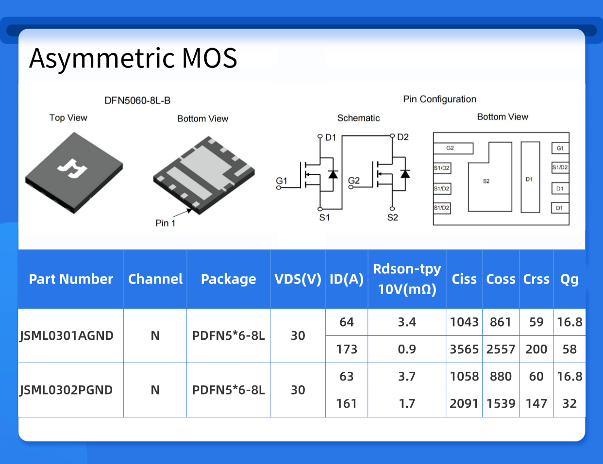 JSML0302PGND:在PDFN5×6封裝內(nèi)實現(xiàn)0.9mΩ超低阻抗,電流能力達173A